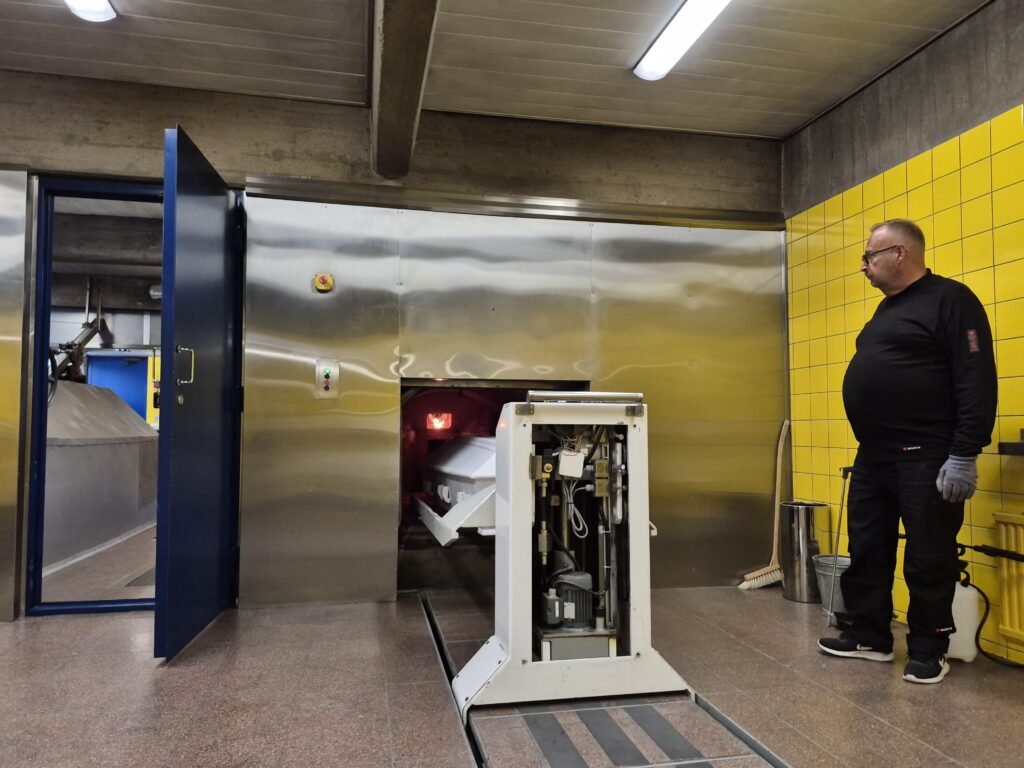 – Vainajaa poltetaan noin puolitoista tuntia – joskus jopa kaksi tuntia, kertoo uunia operoiva erityisammattimies Pasi Lahtinen.