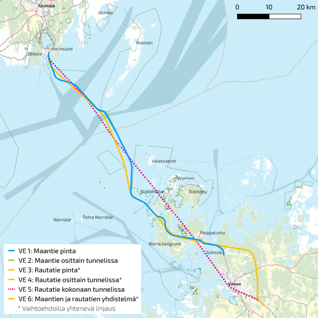 Väylävirasto kartoitti kuusi eri toteutusuvaihtoehtoa. Kuva: Väylävirasto.