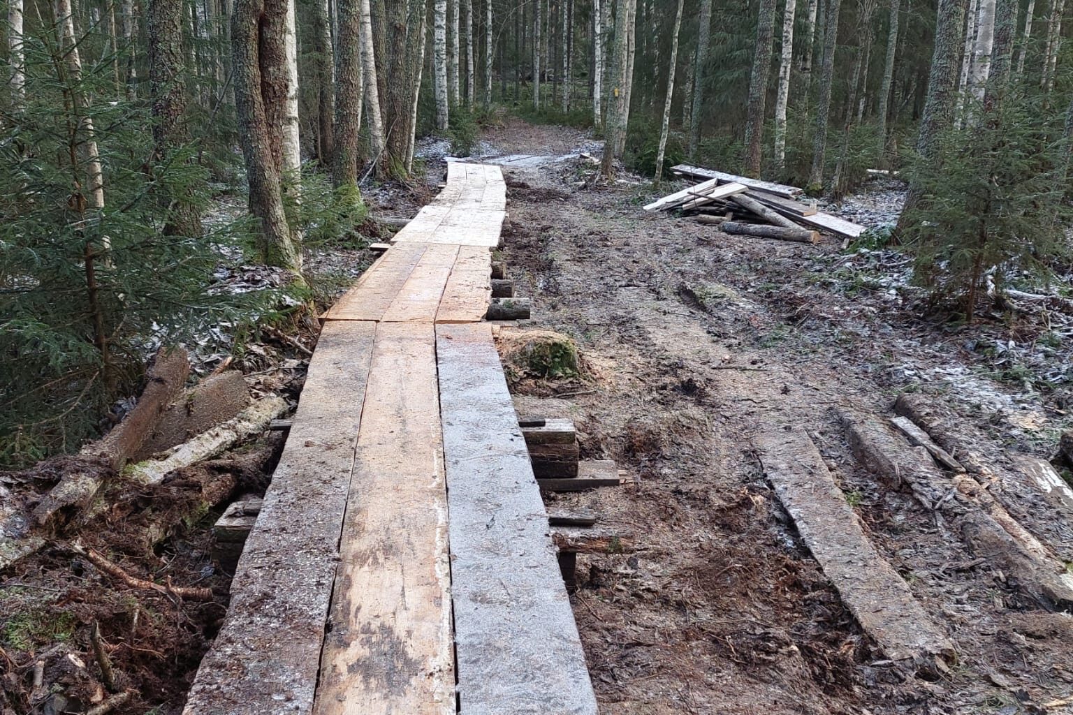 Olavin Retkeilijät ry kunnostaa Ympäristöbonus-lahjoituksen turvin ulkoilureittiä Savonlinnassa. Kuva: Harri Heinonen.